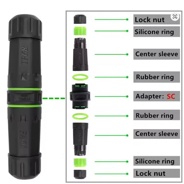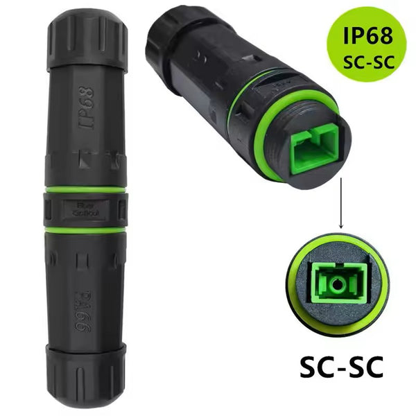 This IP68-rated outdoor fiber optic adapter is designed for reliable signal transmission in harsh and demanding environments. Featuring an SC single-core telecom-grade APC interface, it provides a secure, waterproof, and flame-retardant connection suitable for both commercial and industrial applications.